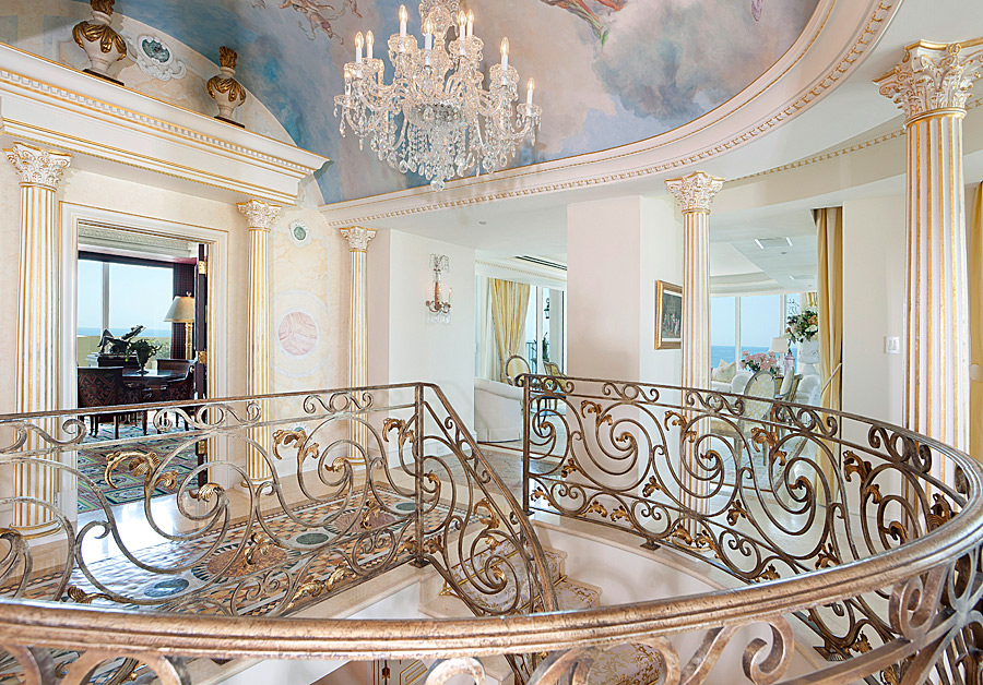 Ultra-luxurious details are found throughout the images composed at this Tuscan-Mediterranean inspired penthouse. Images for Premier Estate Properties. Photographed by Ed Butera for ibi
