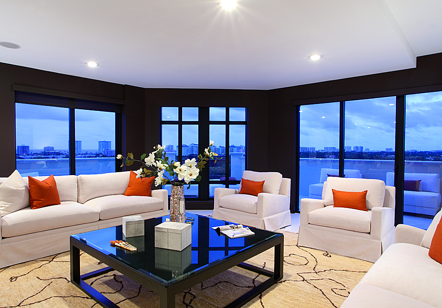 Magnificent views from Penthouse in Palmetto Park Road. Images created for Premier Estate Properties. Photographed by Ed Butera for ibi designs For