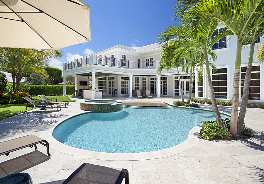 An imposing facade is accompanied by timeless design in this Intracoastal point lot residence. Photography for Premier Estate Properties. Photographed by […]